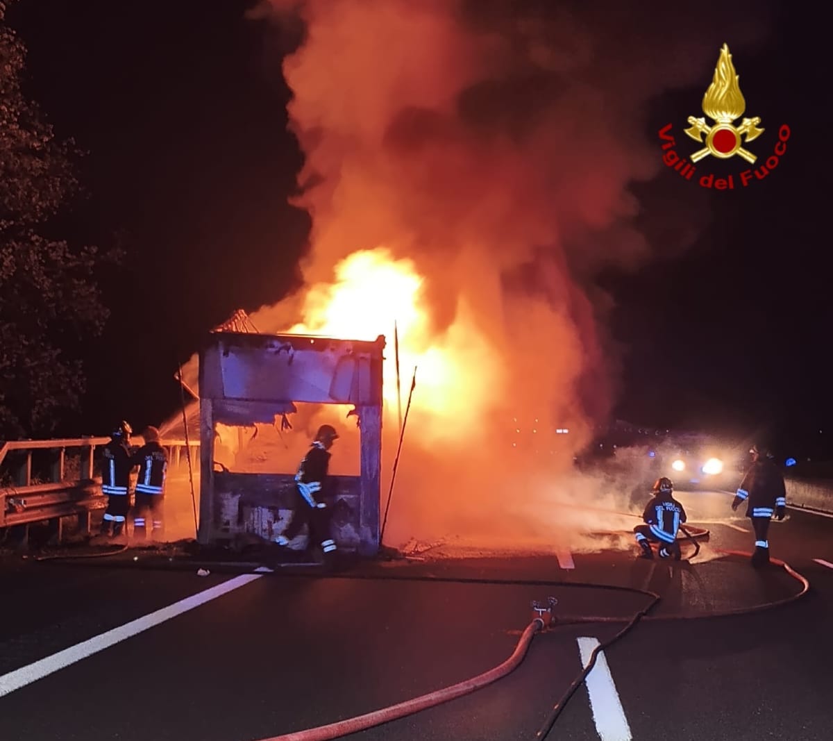 Ceprano (FR) – Tir a fuoco in A1 di notte, complesso intervento dei vigili del fuoco